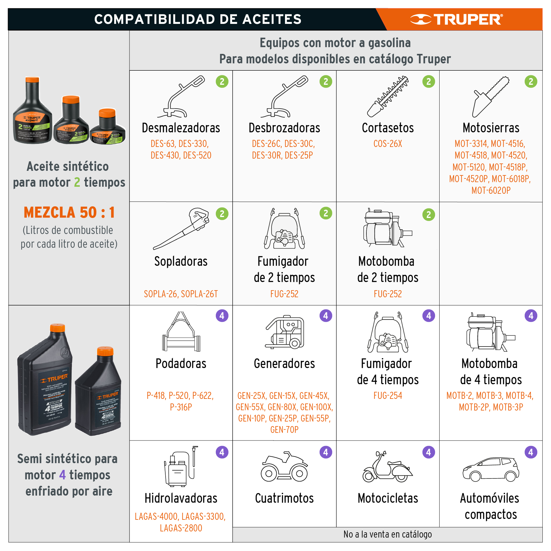 - Para mezclas 50:1, 40:1, 32:1, y 16:1