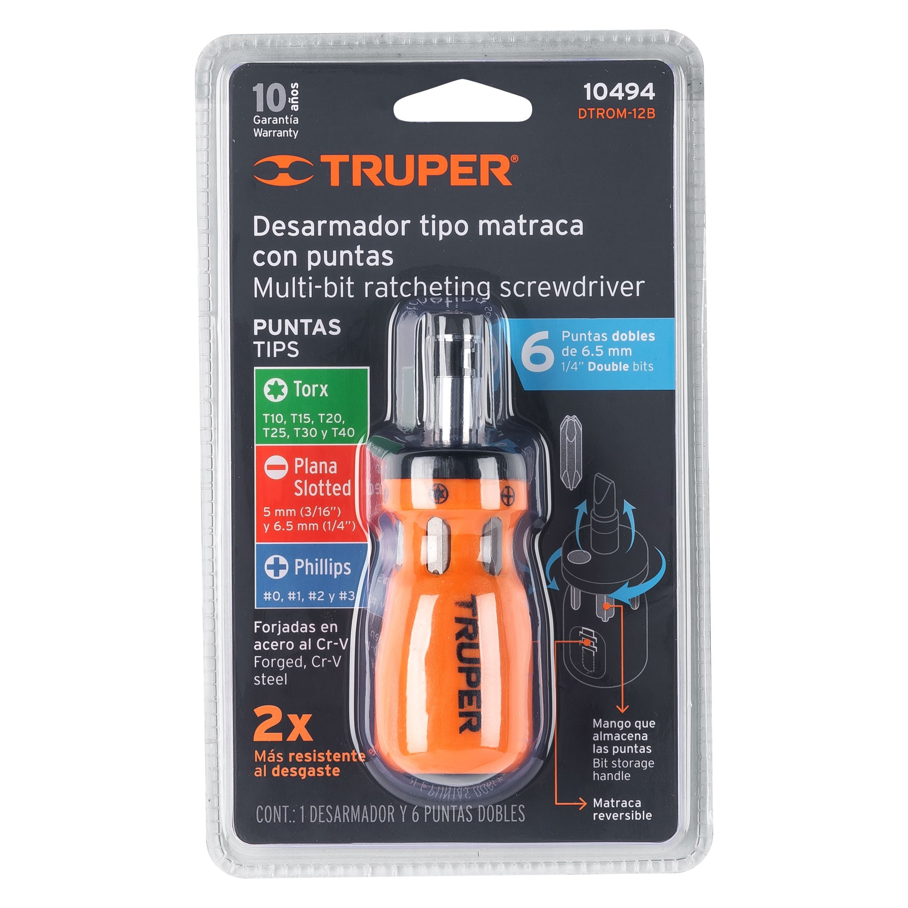 Desarmador tipo trompo con matraca 6 puntas dobles