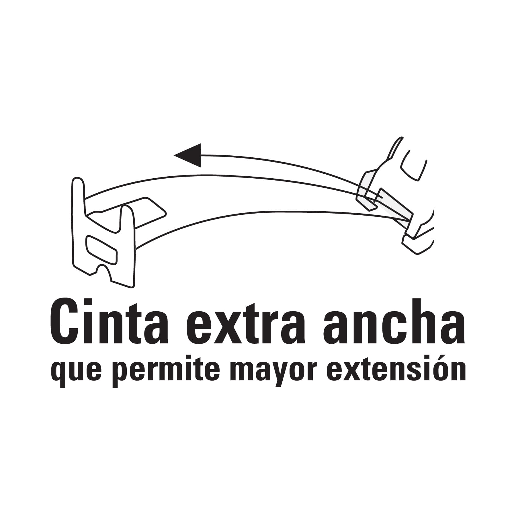 - Cinta ancha que permite mayor extensión, cubierta de laca que evita rayaduras y desgaste