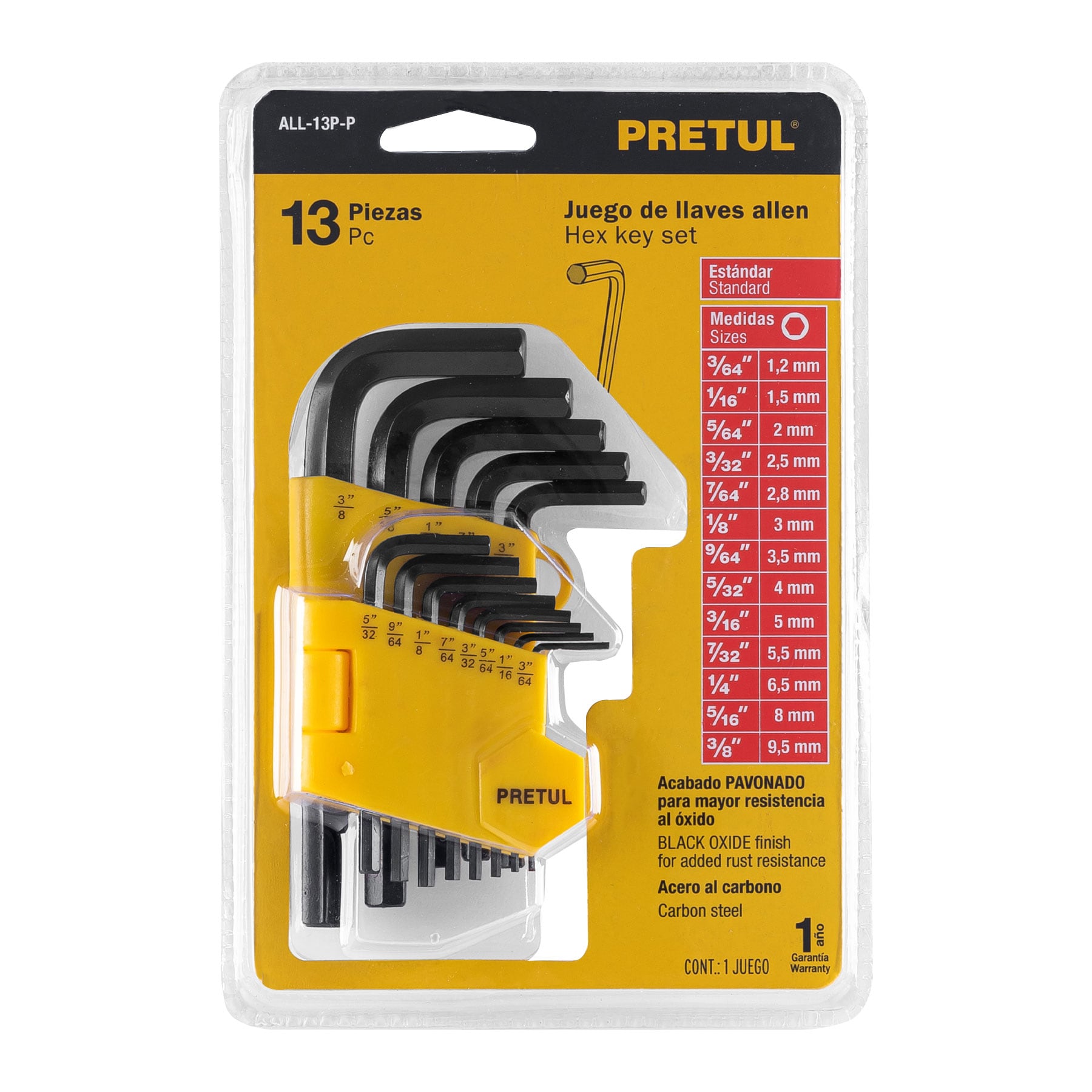 Juego de 13 llaves Allen standard con organizador Pretul