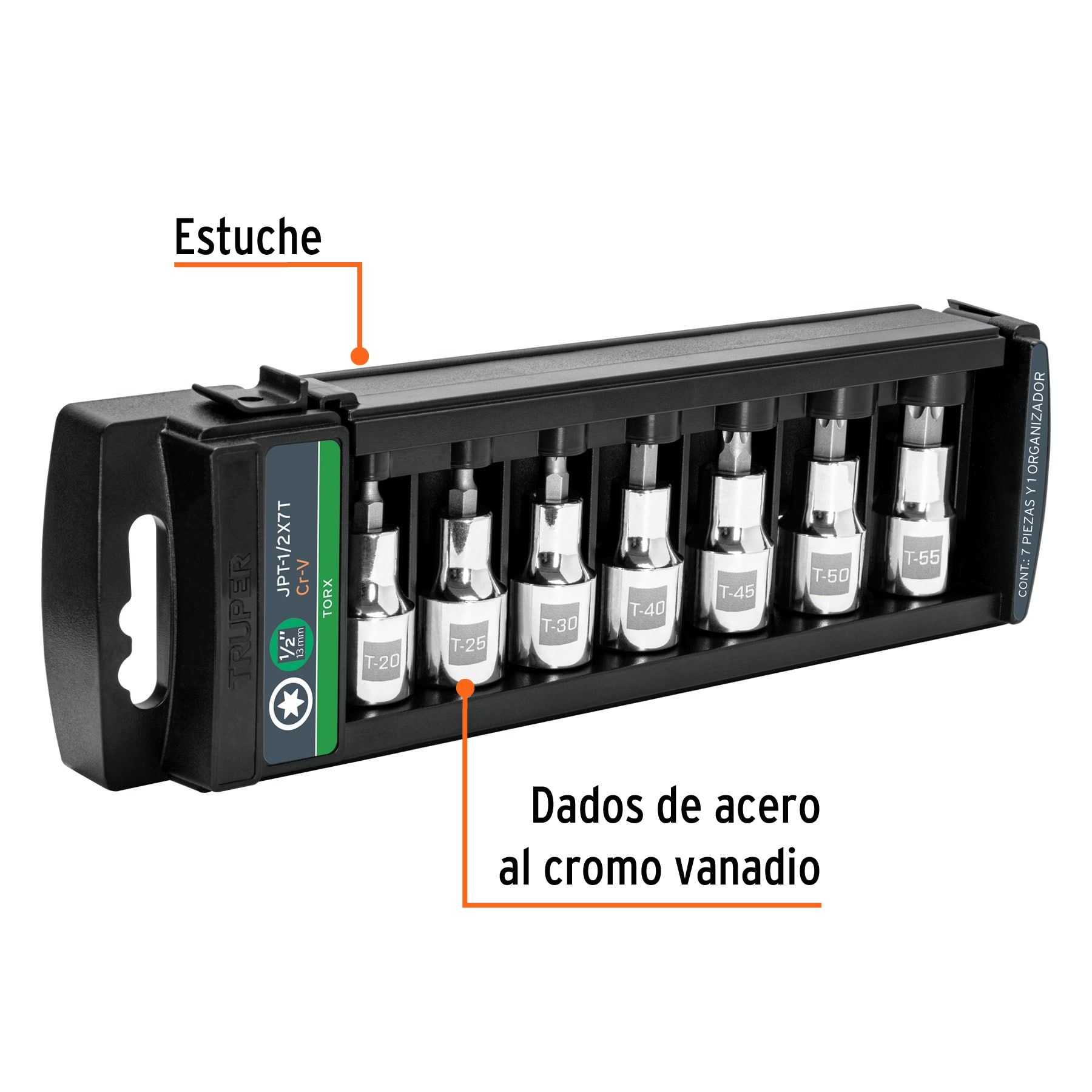 Juego de 7 dados cuadro 1/2″ punta torx Truper