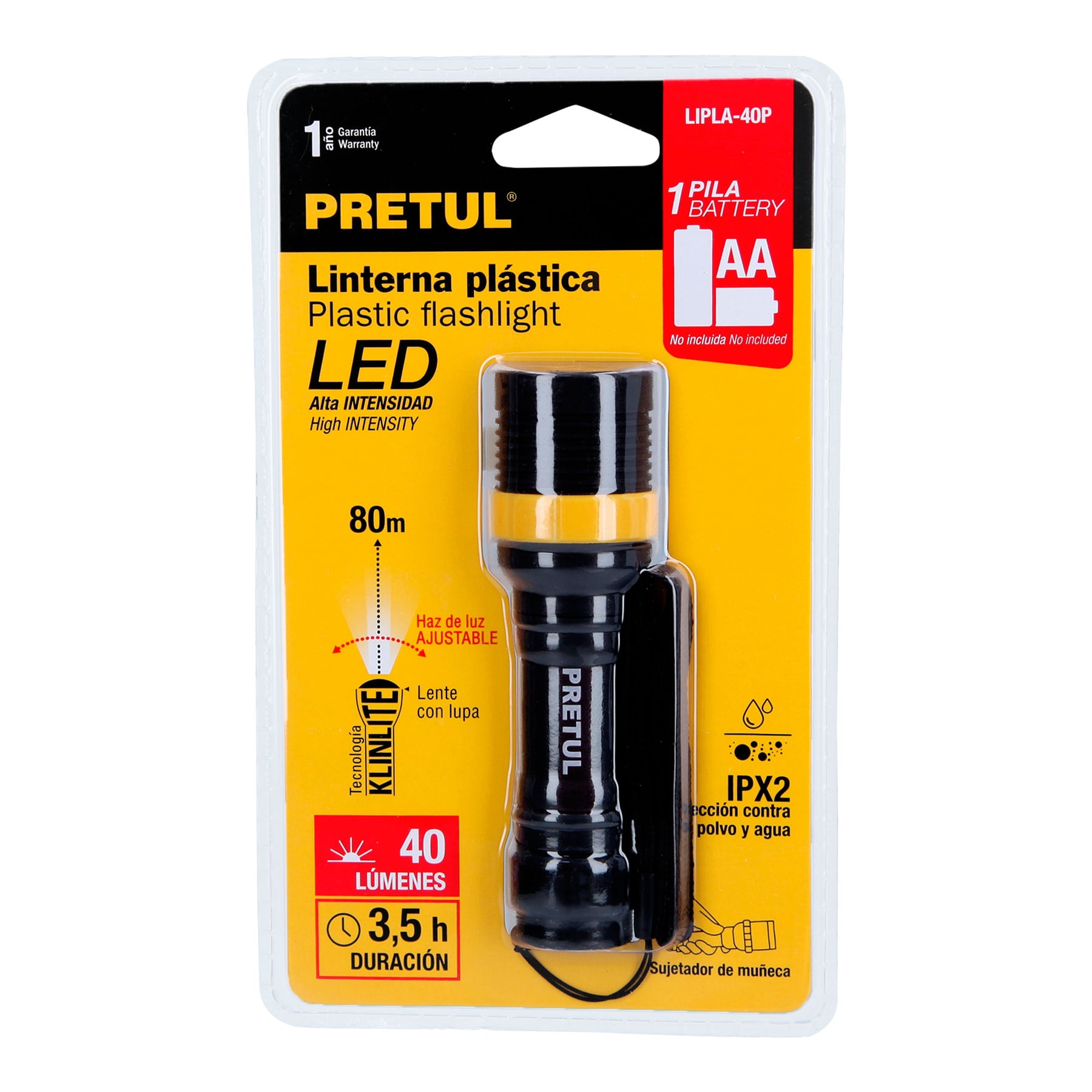 Linterna plástica LED 1 pila AAA 40 lm Pretul