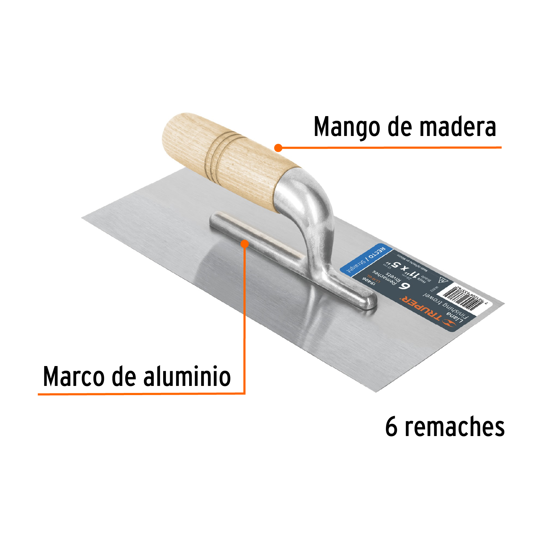 - Para extender y alisar cemento, mortero, yeso y aplanar mezcla
