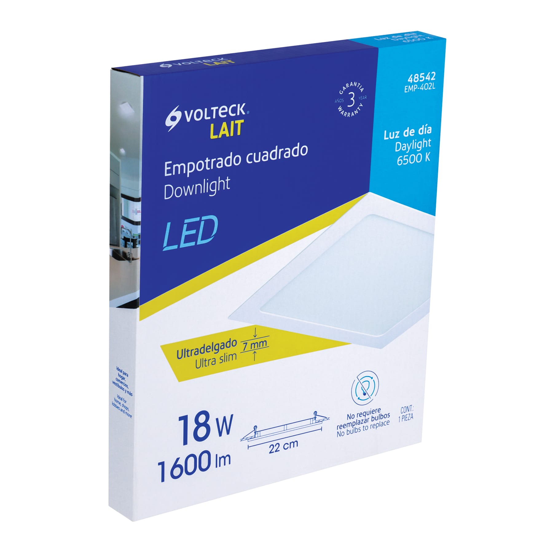 Luminario ultradelgado de empotrar 18W luz de día