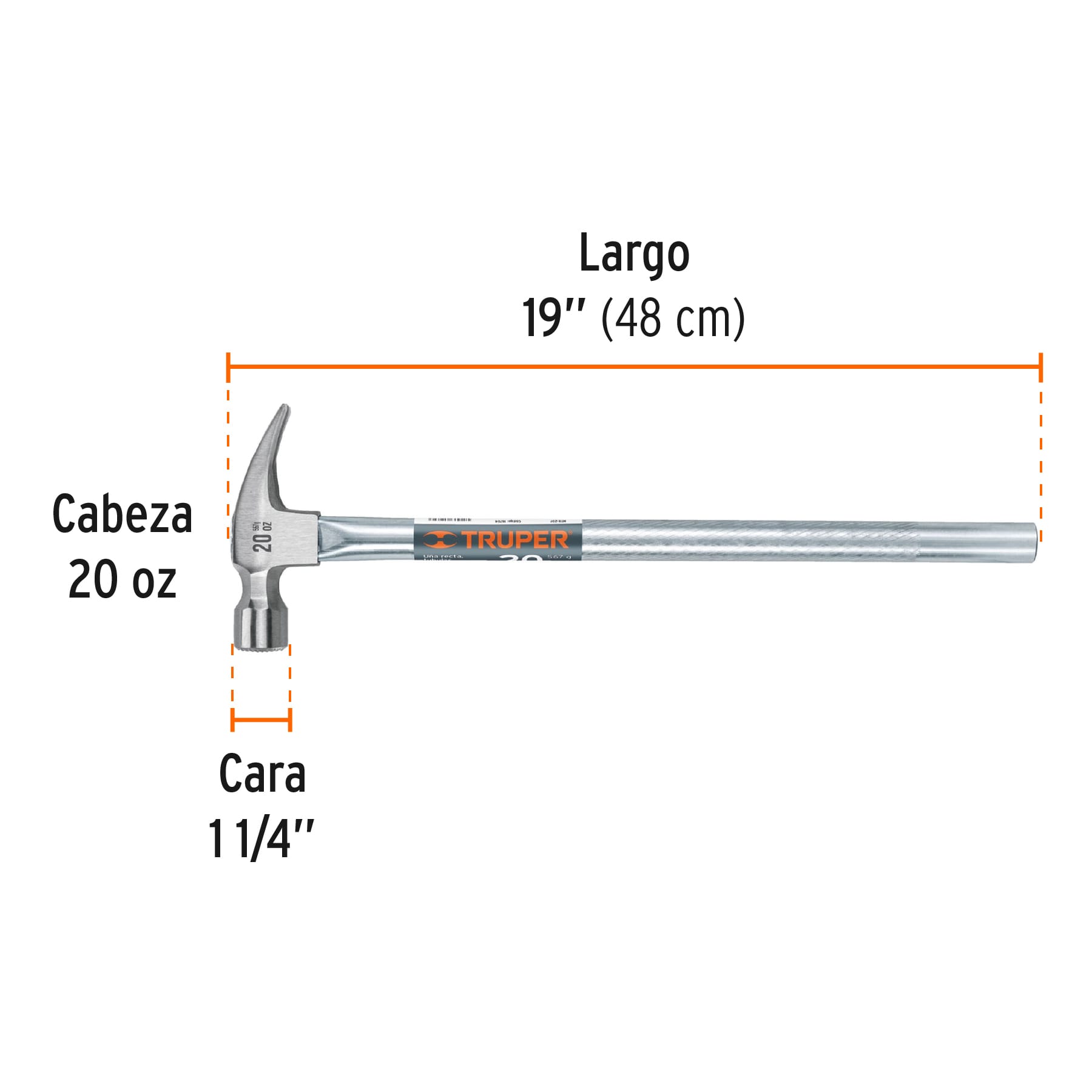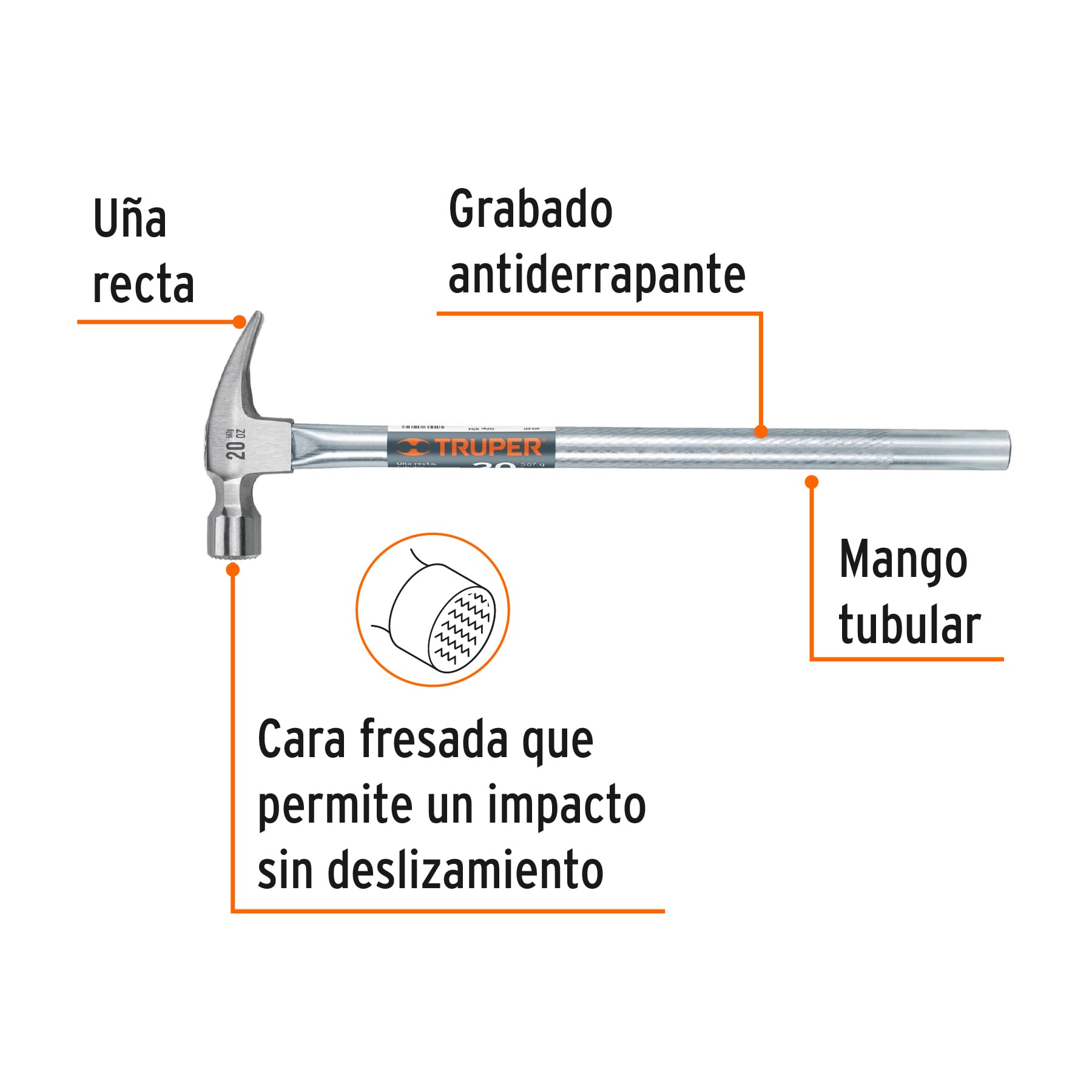 Martillo tubular pulido 20oz cara fresada uña recta Truper