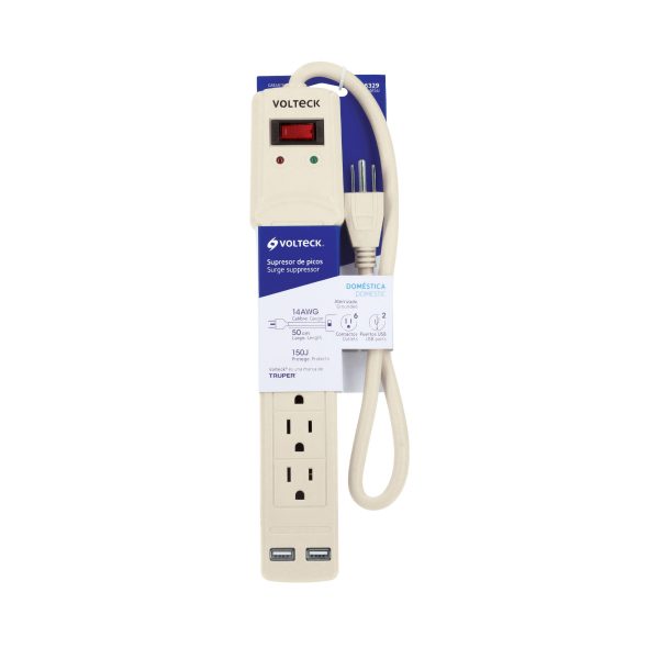 Multicontacto 14 AWG 6 entradas 2 ptos. USB sup. 150J marfil