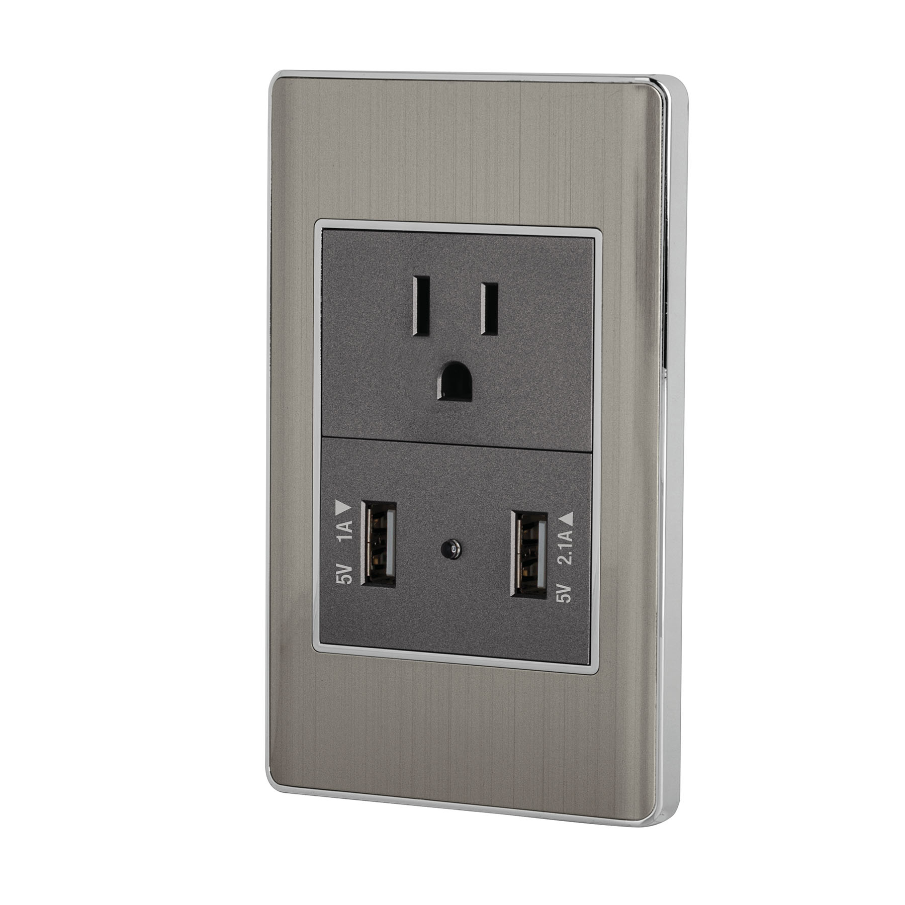 Placa armada acero 1 contacto y 2 puertos USB Lisboa