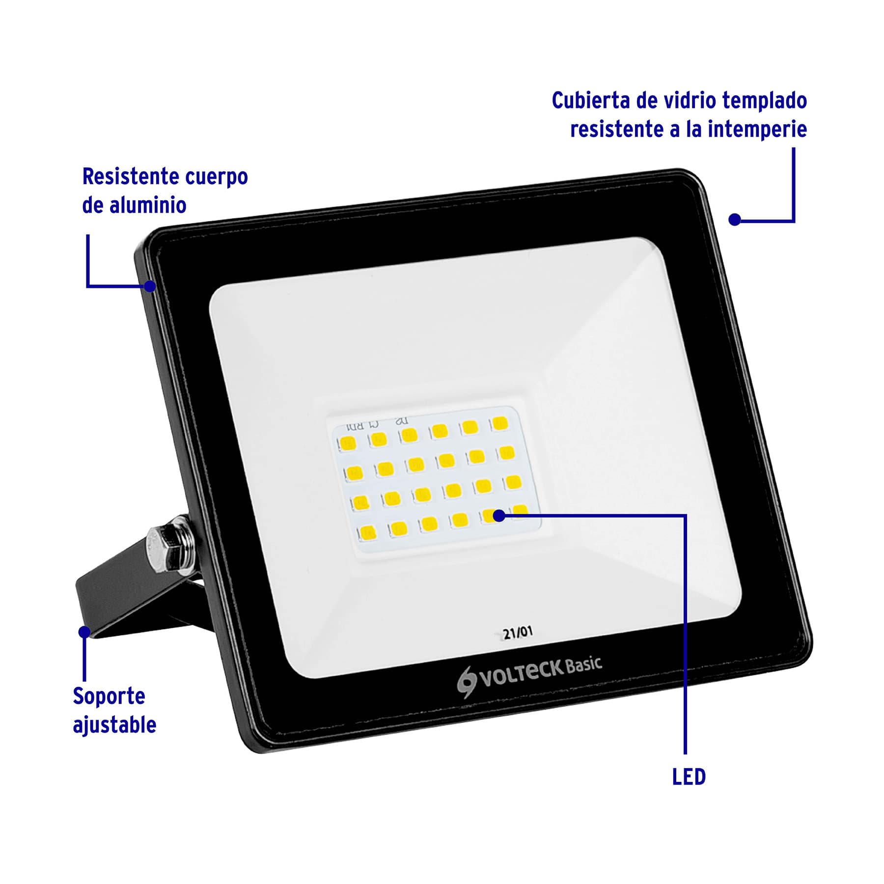 - Cuerpo de aluminio y pantalla de vidrio templado, resistentes a la intemperie
