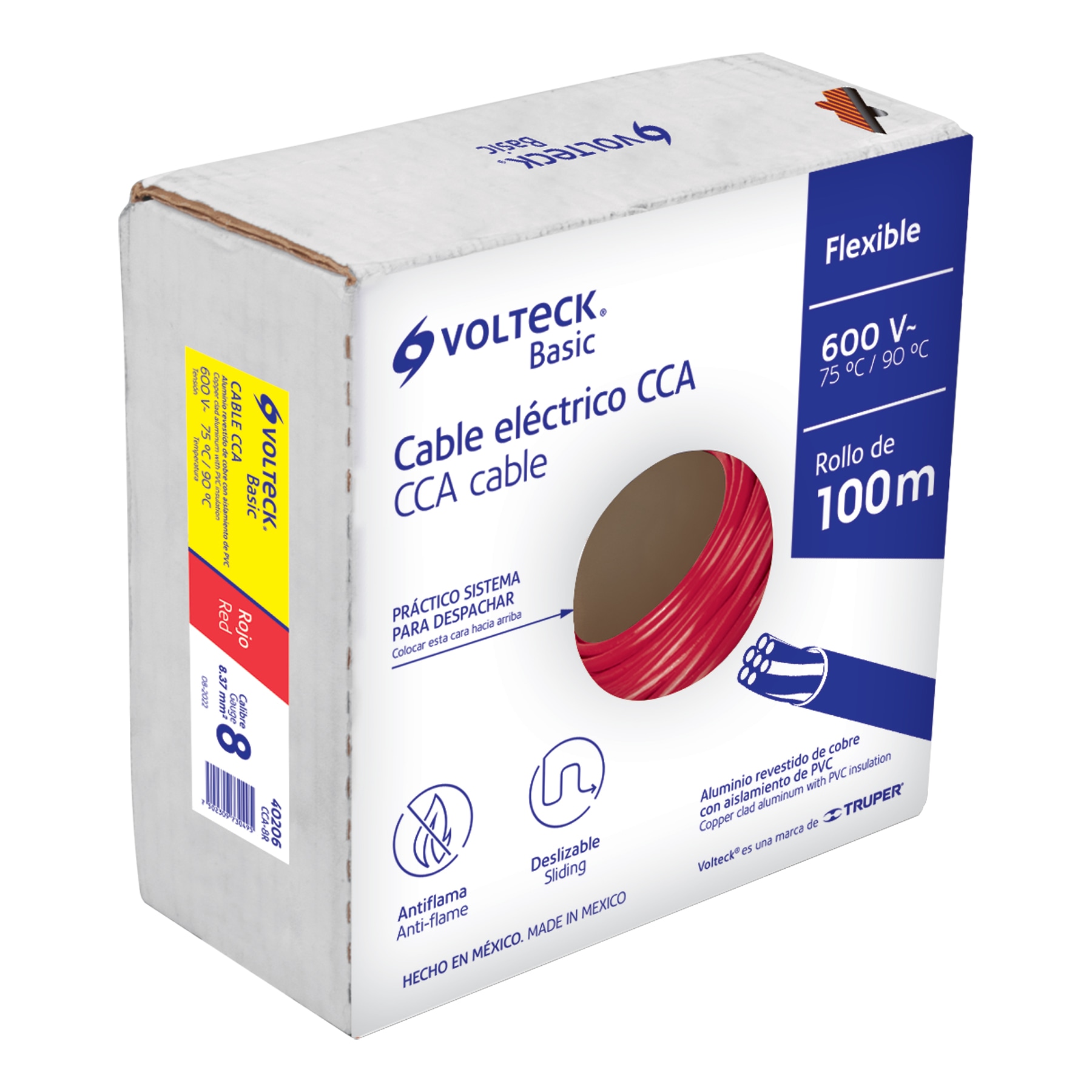 Rollo de 100 metros de cable THW CCA 8 AWG rojo