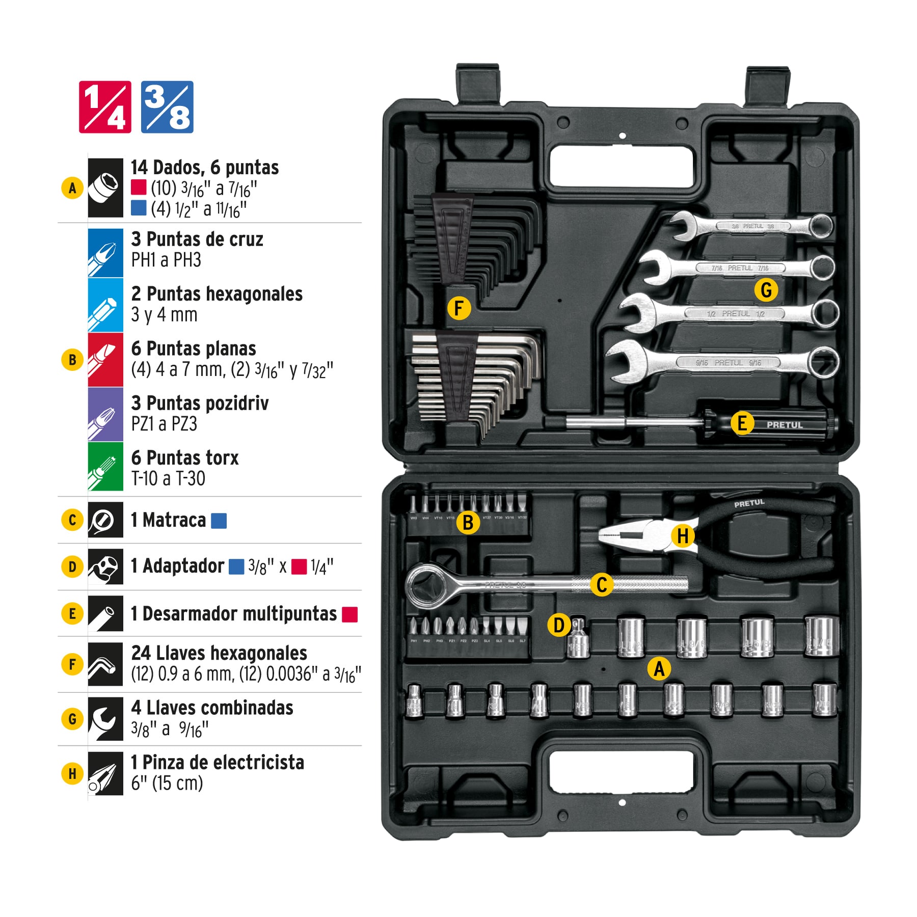 - Estuche de plástico inyectado que mantiene las piezas organizadas
